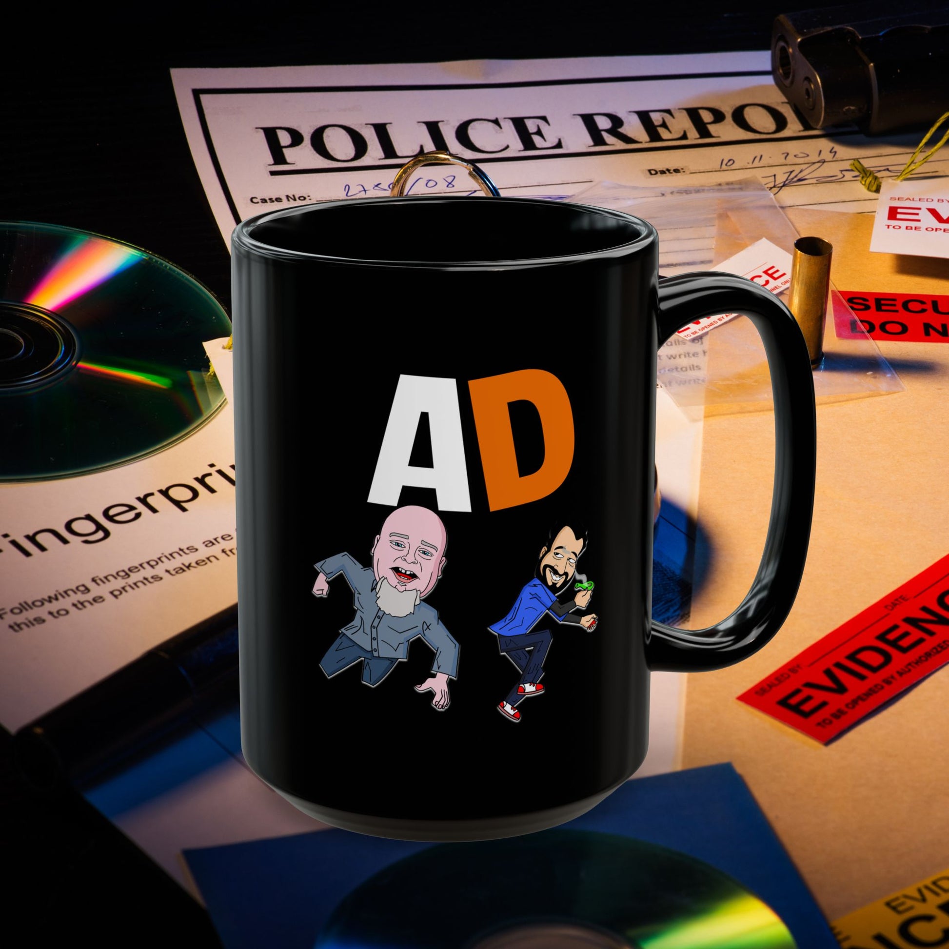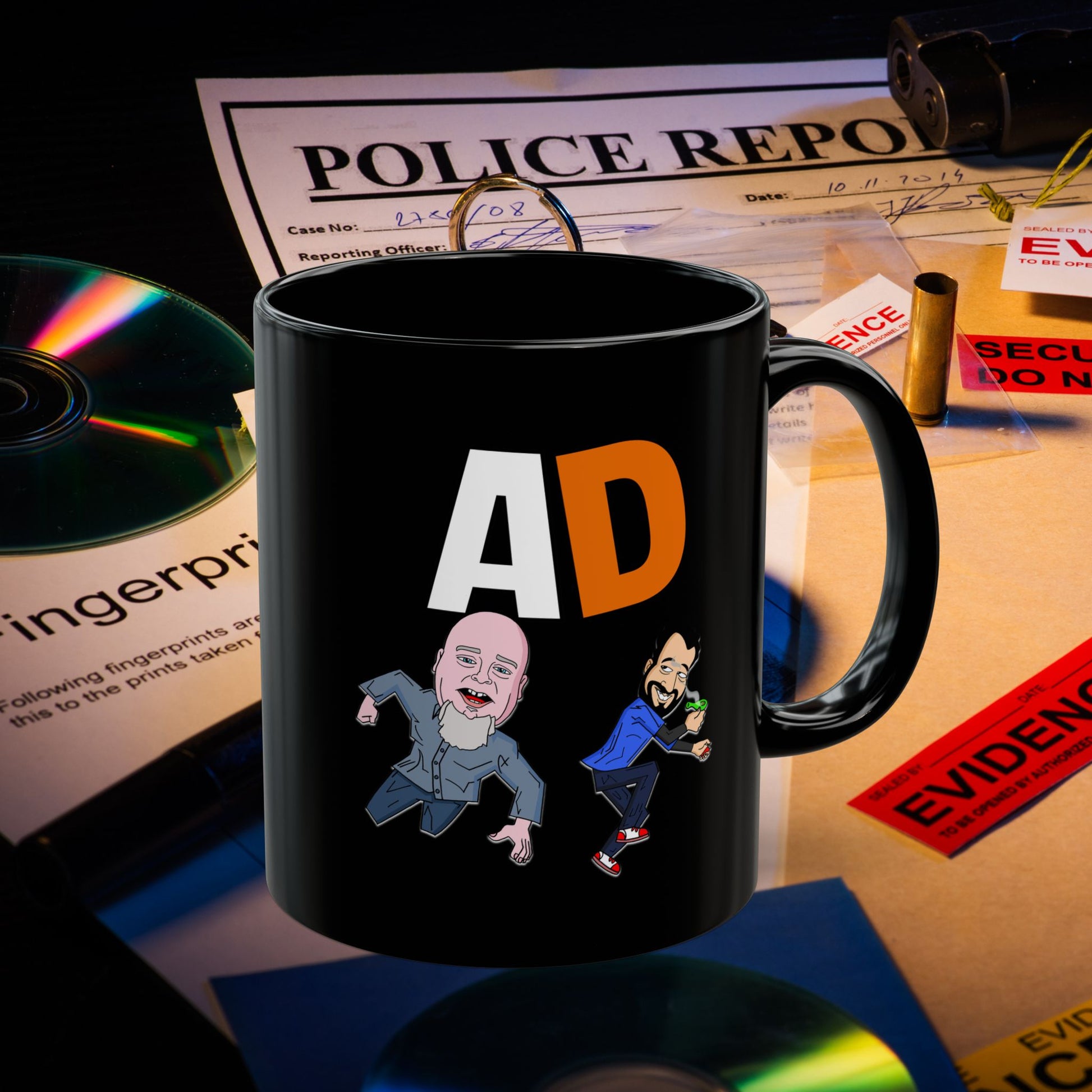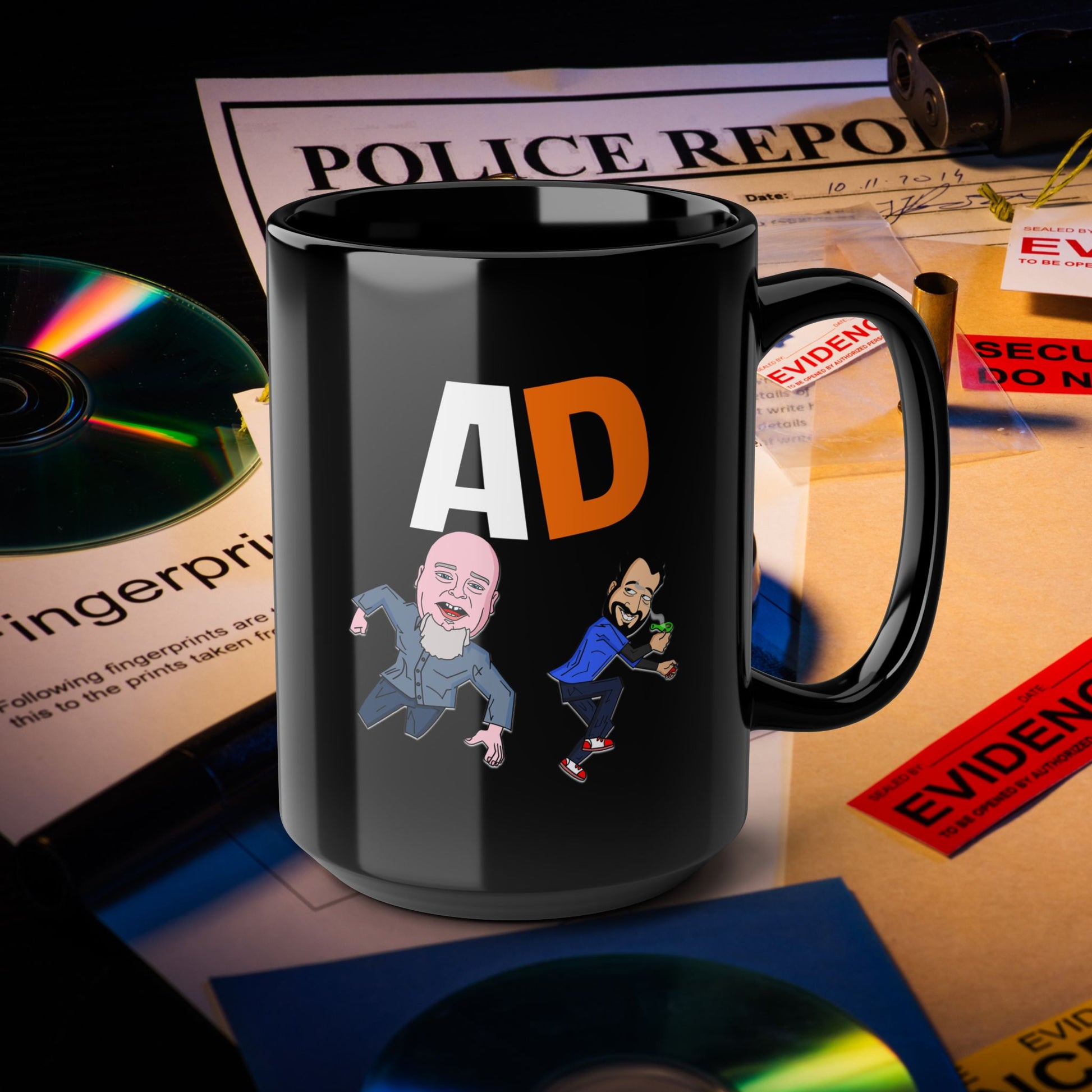 This mug isn’t just drinkware—it’s a visual metaphor for the chaos that is Arresting Developments. With Joe and Mike mid-sprint across a backdrop of forensic flair, it’s unclear whether they’re running from a crime scene or just late for the next recording session. Either way, the energy is pure AD: fast, funny, and slightly incriminating.