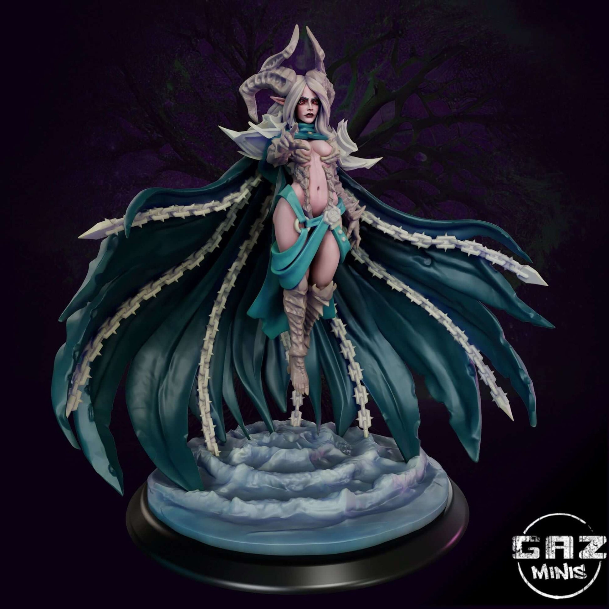 Saya, the Tiefling Demon Warrior, exudes a fierce and commanding presence. With her infernal heritage apparent in her sharp horns, glowing eyes, and devilish tail, she wields a massive weapon with confidence and power. Her battle-ready stance and intense gaze make her a striking figure on any tabletop or display.