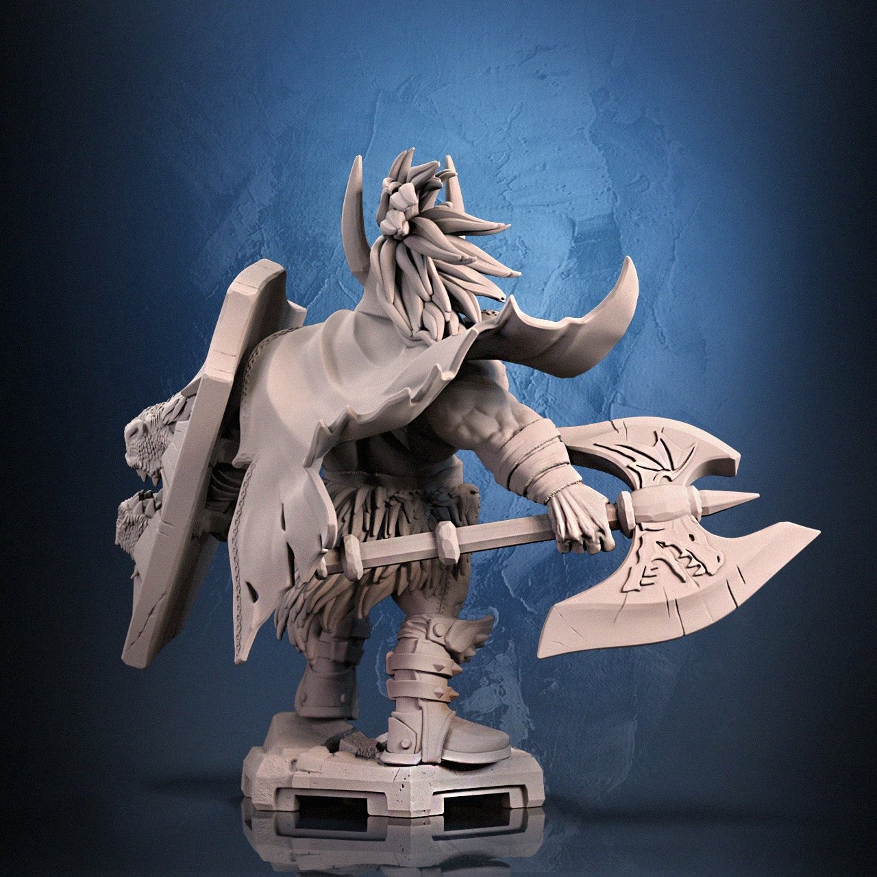 Featuring a stout warrior with a large axe and a shield emblazoned with a dragon head, Hagall is an ideal character for your dark fantasy TTRPG adventures. The detailed armor and imposing stance make this model great for games like Warhammer or Dungeons & Dragons.