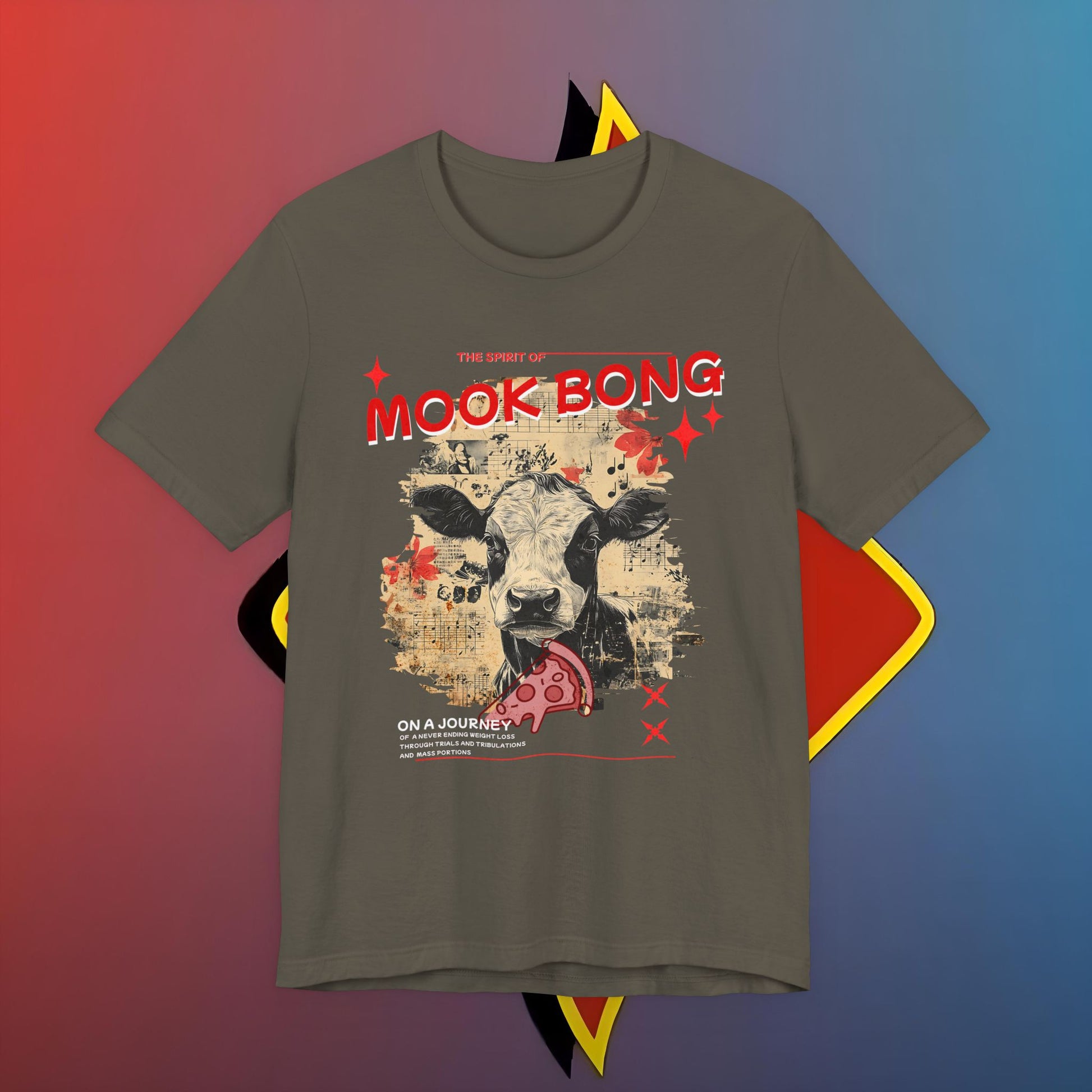 Featuring a wide-eyed bovine pizza fiend and fiery “MookBong” text that screams snack attack, this unisex masterpiece is perfect for fans of absurd comedy, greasy glory, and network lore that runs deeper than a cheese-stuffed crust. Whether you're repping your favorite content creators or just vibing with your inner pizza-loving farm animal, this tee makes every wear a flavor-packed laugh fest.