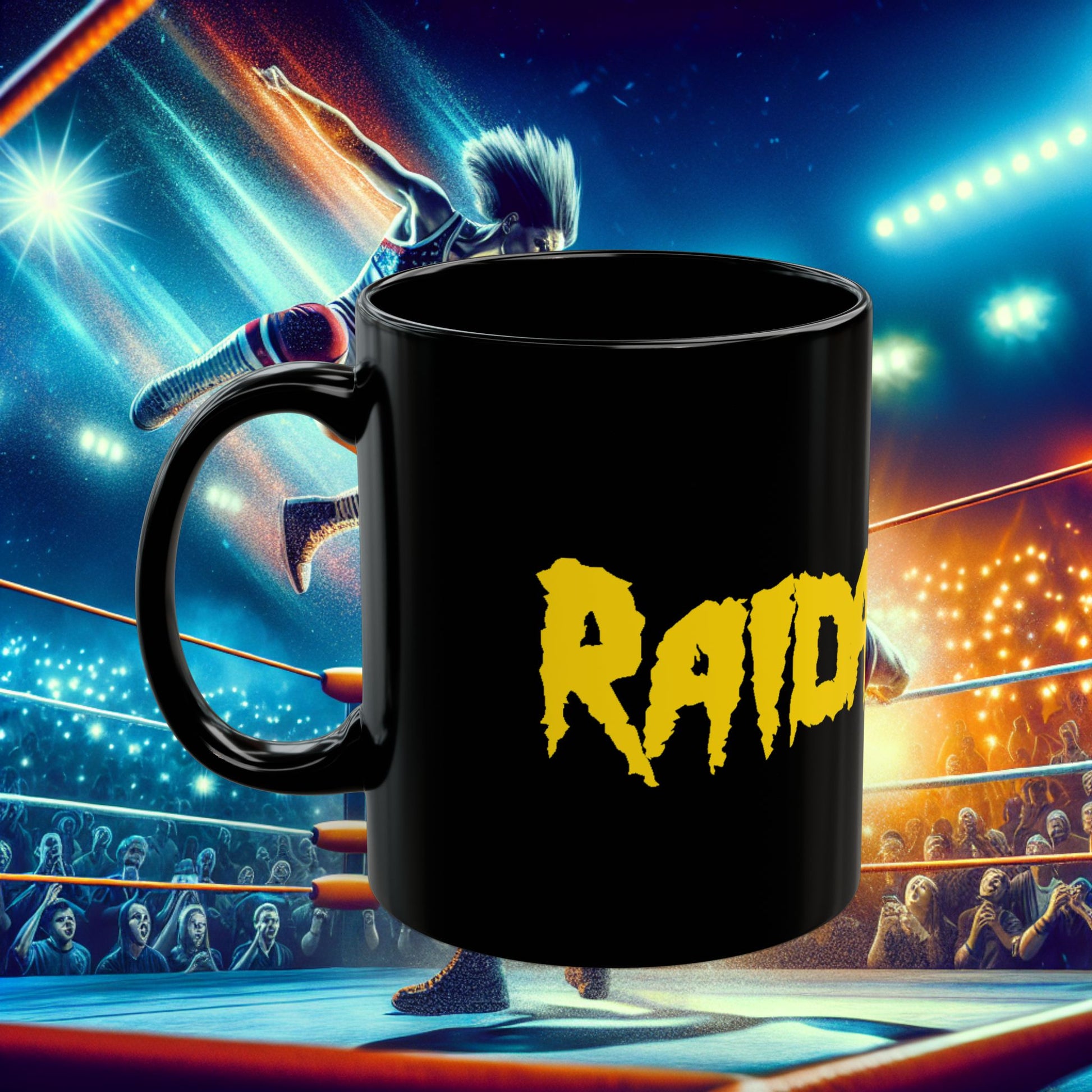 Featuring bold yellow “RAIDAMANIA” lettering that screams “I’ve had three cups and I’m ready to cut a promo,” this mug is perfect for: