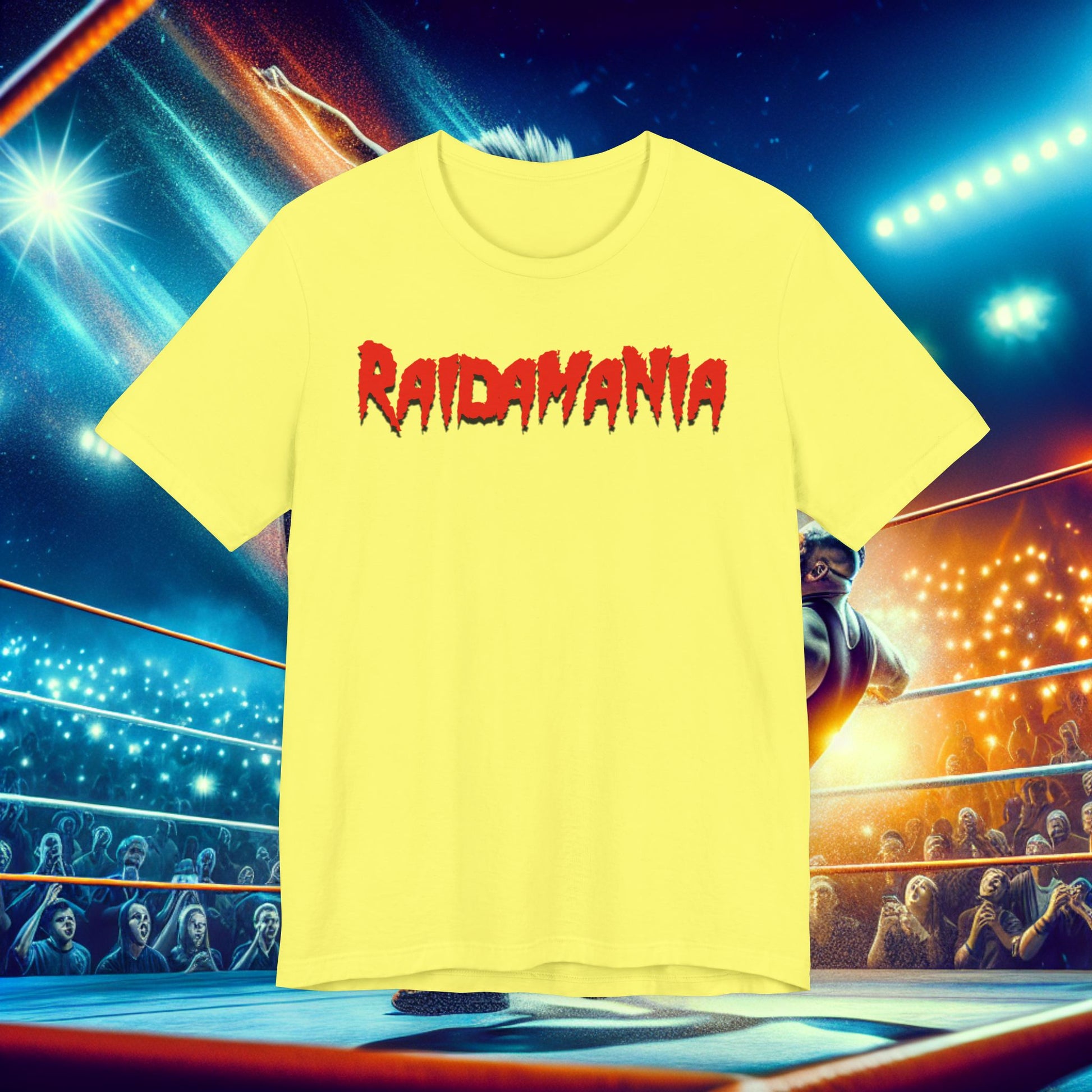 Perfect for wrestling superfans, retro stylists, and anyone who's ever cut a promo in their bathroom mirror, this tee brings the heat of Raidamania straight to your closet. Pair it with denim, boots, or a championship belt made of duct tape and dreams.
