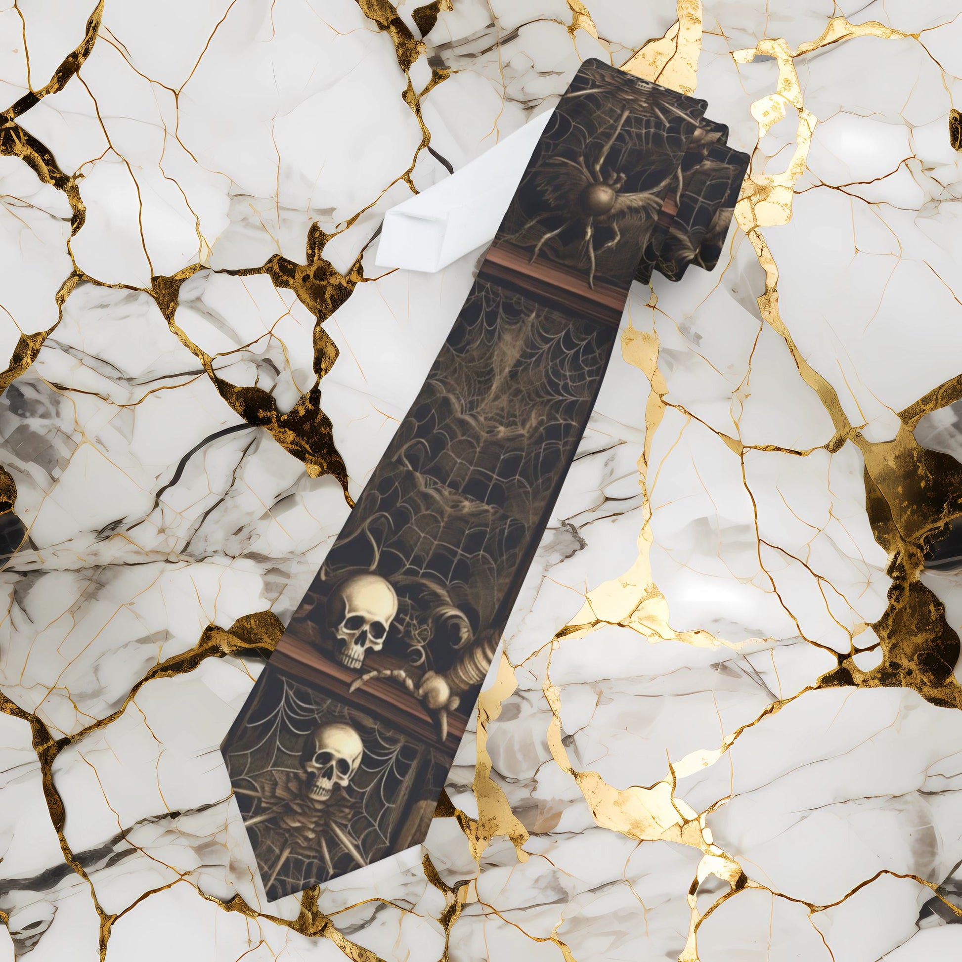 Skull & Spiderweb Necktie Gothic Tie for Men