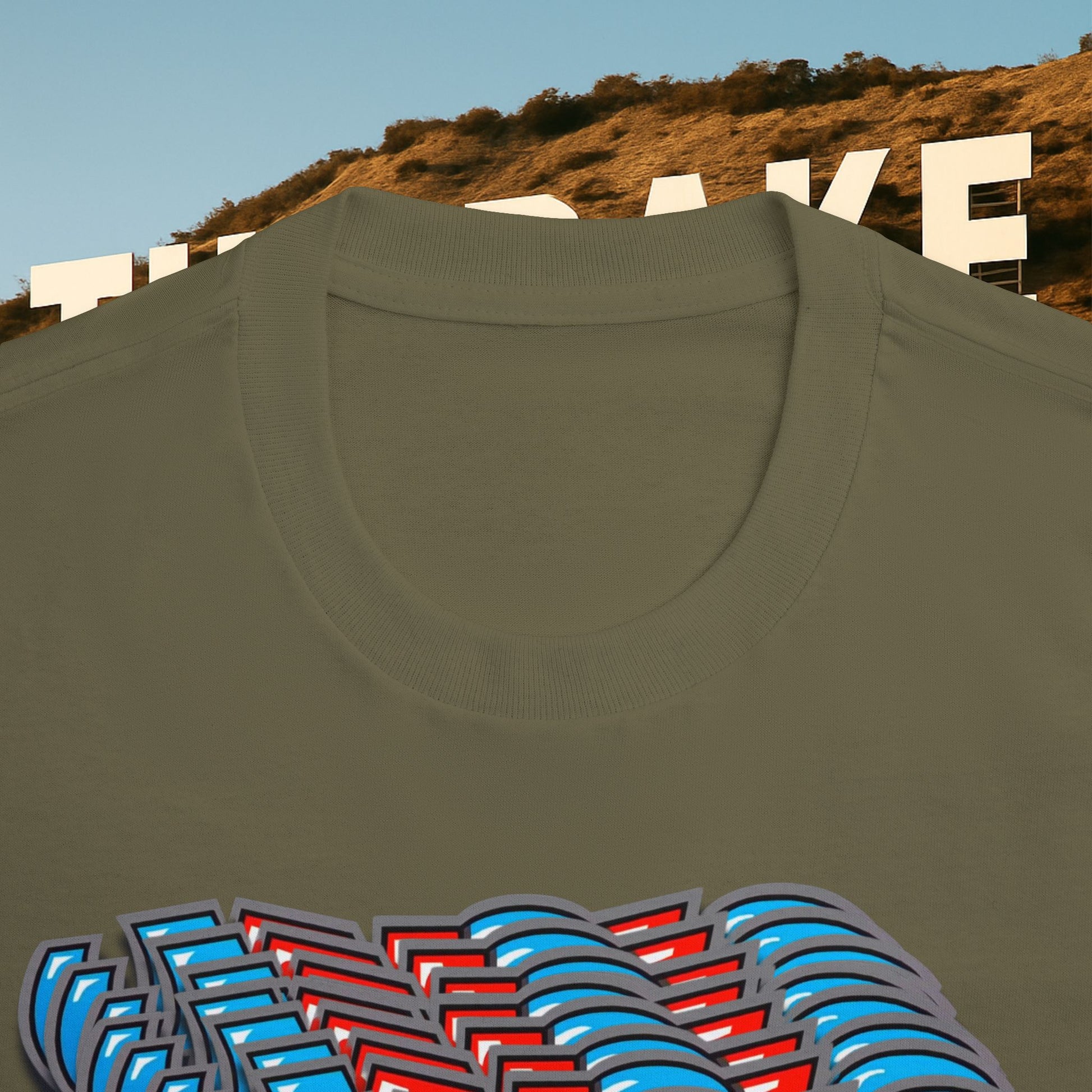 This classic tee channels playful nostalgia with bold, layered lettering and a cheeky character illustration centered on the chest. The graphic pops against an earthy olive base, giving the shirt a relaxed, lived-in vibe that nods to skate, street, and retro graphic culture. Wear it to hang with friends, cruise around town, or add a statement layer to a simple outfit. The medium-weight cotton feels substantial but breathable — the kind of shirt that breaks in and becomes a favorite over time. Small details like a ribbed collar, reinforced shoulder tape, and double-needle hems keep the shape and resist wear, so the design stays front-and-center for seasons to come.