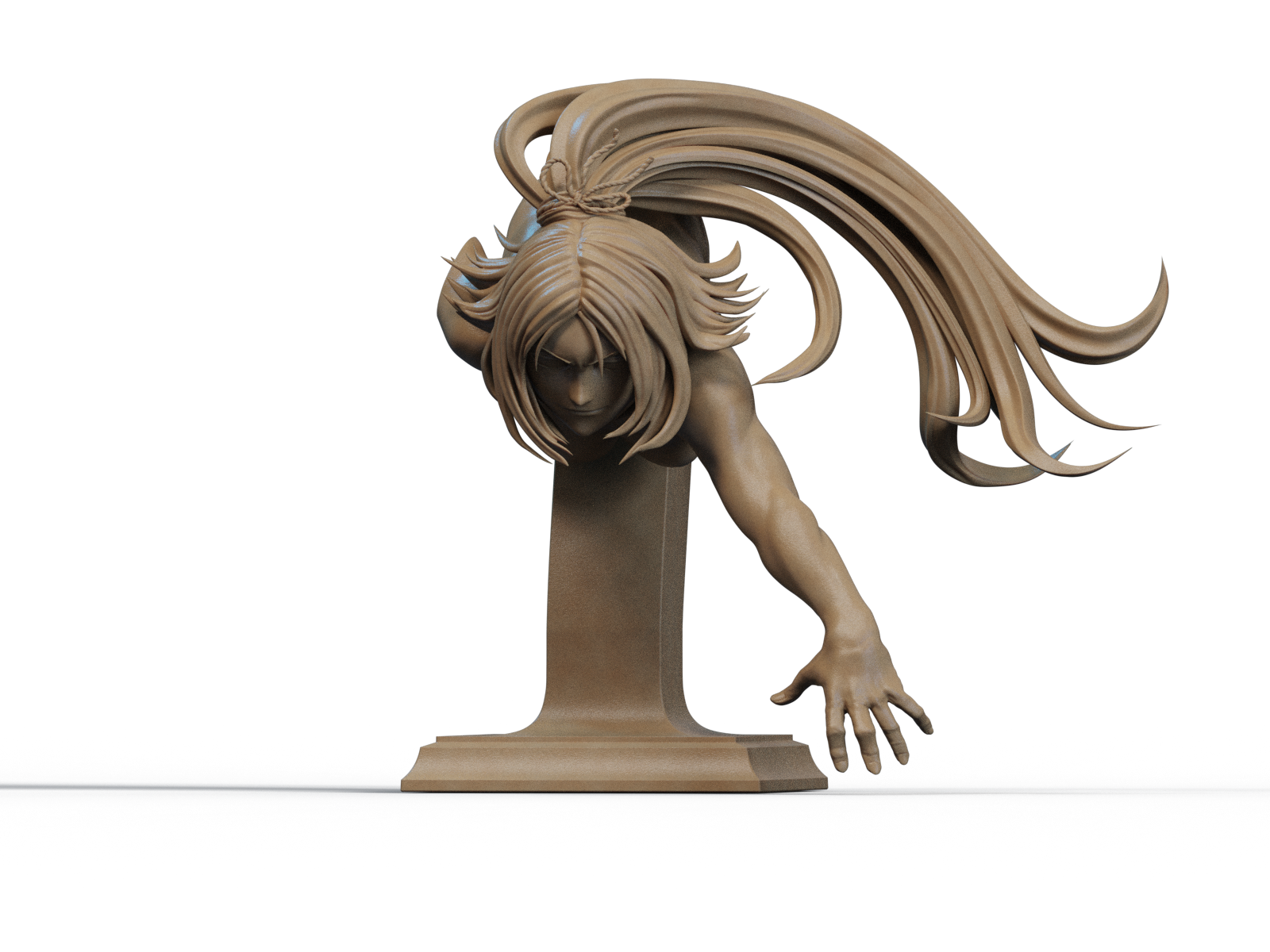 Yoruichi Shihouin collectible statue from Bleach, captured mid-pounce in her iconic stealth outfit with dynamic hair sculpt and crouched feline posture. Available in 1:6 and 1:9 scale and unpainted bust formats, this piece is perfect for anime figure collectors and fans of Shonen classics.